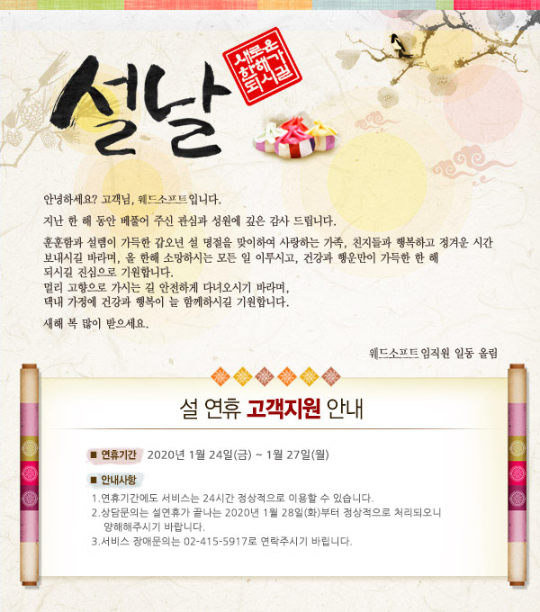 2020년 설 연휴 고객지원 안내