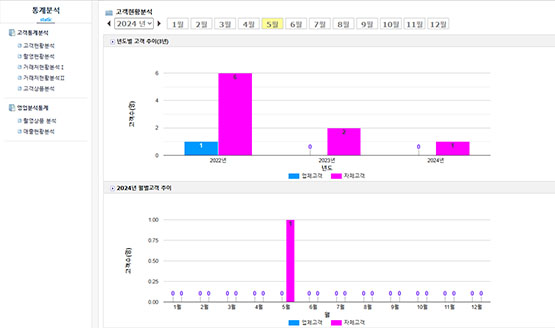 고객매출내역, 고객입금내역 및 입금현황(월간) 등등 다양한 정산현황을 볼 수 있습니다. 고객매출내역에 미납현황 한눈에 파악할 수 있으며, 입금현황에서 월간을 집계현황 볼 수 있어 매출관리를 효과적을로 할 수 있습니다.